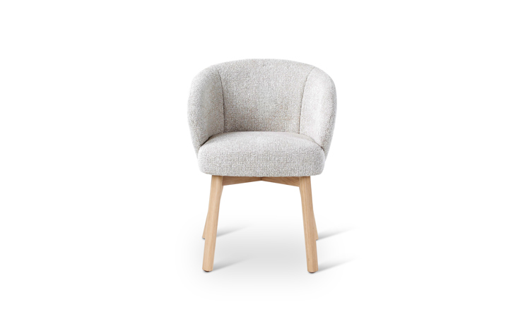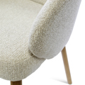 De Bo stoel is een echte blikvanger in elk interieur. Met zijn opvallend bolle kuip en stevige eikenhouten poten combineert hij comfort met een uniek design. Verkrijgbaar in naturel met beige of donkerbruin met coconut.