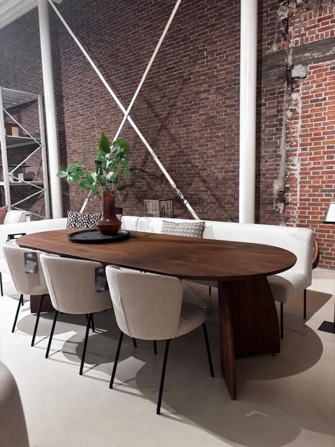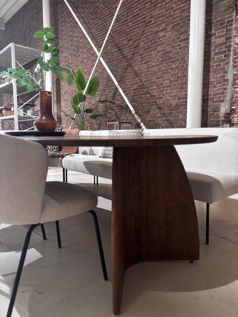 Tafel Daan met houten blad én houten bold onderstel is een klassieker in onze collectie. De plat ovale vorm van het blad zorgt graag voor een prachtige sfeer in de woonkamer.