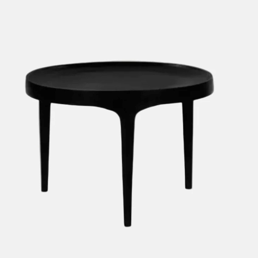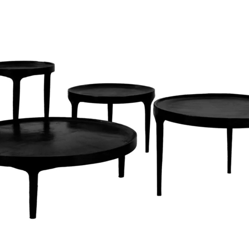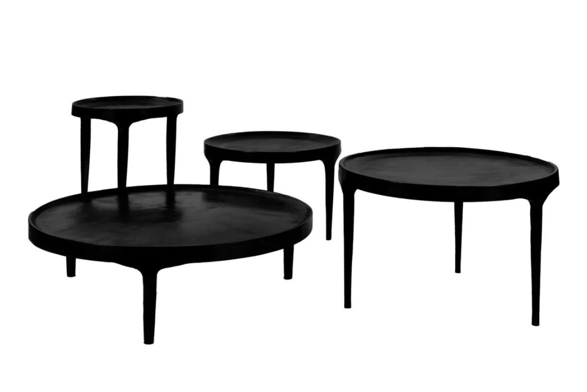 Deze set aluminium tafels valt op door zijn unieke, levendige ontwerp. Met hun verschillende maten kunnen ze afzonderlijk worden gebruikt of samen in een elegante variatie van hoogtes.