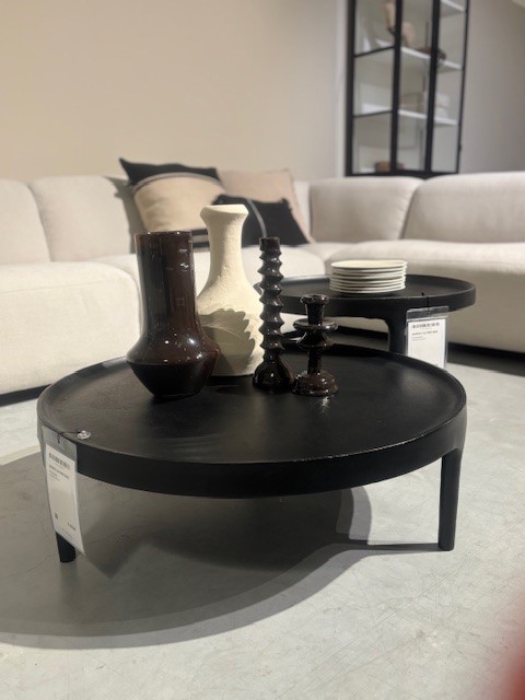 De bijzettafels zijn verkrijgbaar in verschillende kleuren: zwart, wit en koperbrons.